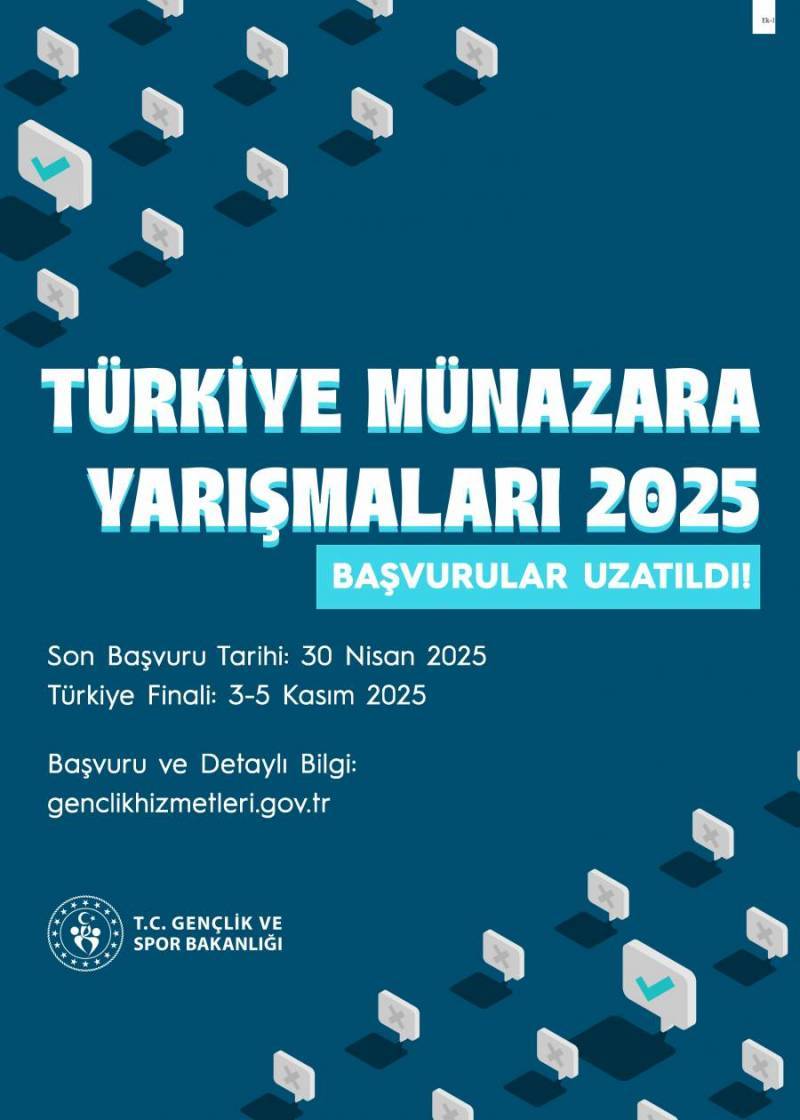 Gençlik ve Spor Bakanlığı Gençlik Hizmetleri Genel Müdürlüğü tarafından gençlerimizin düşüncelerini ifade etmelerine uygun ortam hazırlamak, genel kültürü ve entelektüel bilgi birikimi yüksek bireyler olarak yetişmelerine katkı sağlamak amacıyla "Türkiye Münazara Yarışmaları" düzenlenmektedir.